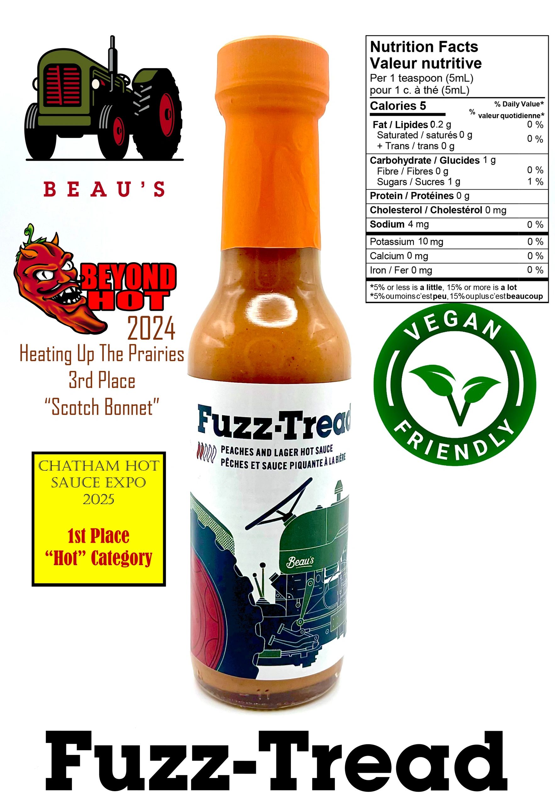 Tasting Notes: We've partnered with Beau's Brewery once again for a brand new sauce that we are sure you have never tried before. Using their flagship beer Lug Tread as a main ingredient, we have paired this lager with a boatload of peaches, and cinnamon, pecans and nutmeg to produce what we think emulates a Peach Pie in a bottle!